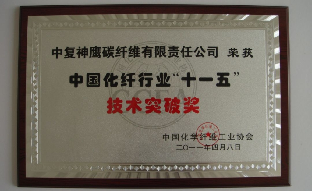 千噸T300碳纖維項(xiàng)目榮獲紡織工業(yè)聯(lián)合會(huì)科技進(jìn)步一等獎(jiǎng),成為國(guó)內(nèi)率先實(shí)現(xiàn)碳纖維產(chǎn)銷量過千噸的企業(yè)。