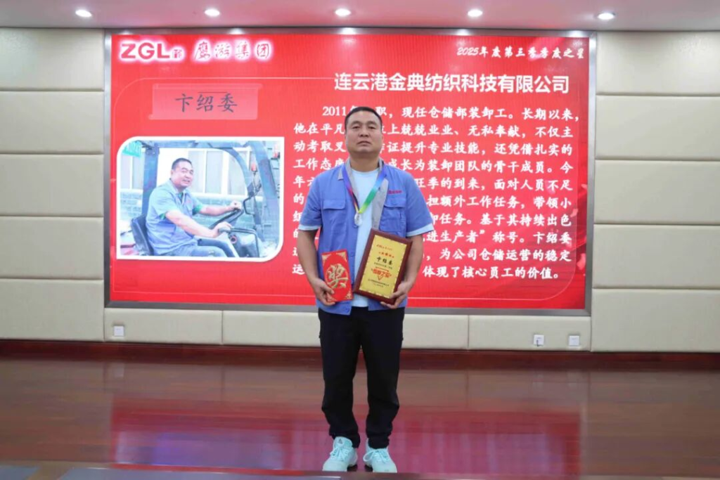 卞紹委,2011年加入金典紡織科技公司,現(xiàn)任倉儲部裝卸工。他積極進取,主動考取叉車操作證,提升專業(yè)能力,逐步成長為裝卸團隊的骨干。工作中,主動承擔(dān)額外任務(wù),帶頭攻堅,帶領(lǐng)小組高效完成繁重裝卸工作,每日加班無怨無悔,有力保障了生產(chǎn)連續(xù)性,體現(xiàn)出顯著的模范帶頭作用。因其持續(xù)出色的表現(xiàn),多次獲評“先進生產(chǎn)者”稱號。
