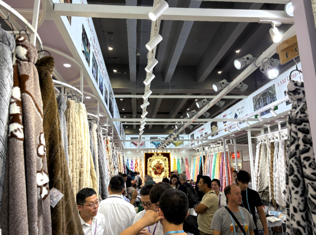 以“全系列精品毛絨生產(chǎn)基地”為定位的鷹游新立成紡織,在展位上有序陳列:兔毛、法蘭絨、超柔、印花、深加工、提花、超寬幅等品類百余款產(chǎn)品。這些兼具科技創(chuàng)新內(nèi)核與環(huán)保理念的面料產(chǎn)品,成功吸引大批客戶駐足洽談,其中全新推出的地毯類產(chǎn)品表現(xiàn)尤為亮眼,現(xiàn)場(chǎng)斬獲多筆訂單,為企業(yè)拓展市場(chǎng)版圖、實(shí)現(xiàn)業(yè)務(wù)規(guī)模增長積蓄了強(qiáng)勁勢(shì)能。